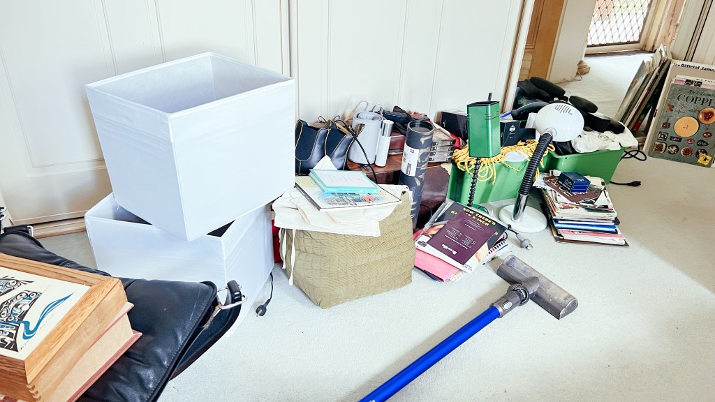 So let’s remove as much of the problem as we can by clearing all the flat surfaces, or at least the visible ones, and then dumping it all in a big pile.