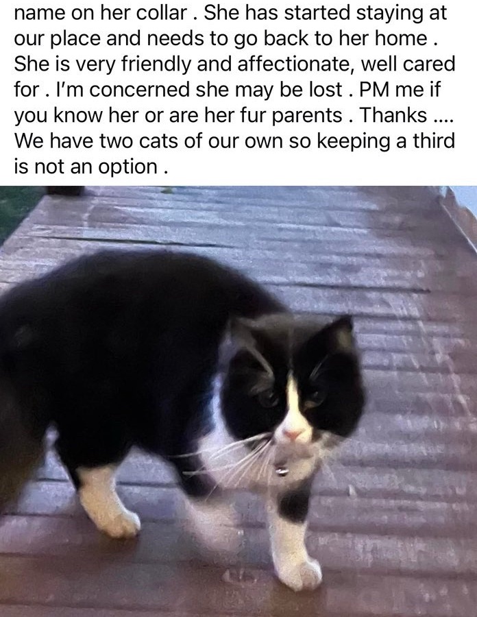 It seems SHE has runaway again. I contacted the person to fill them in on what I knew, the lady in the meantime I had discovered the cat belonged to her new neighbours. Who didn’t seem to be the most responsible pet owners, with several cats and dogs being allowed to roam at will. Also apparently it was a house with a lot of shouting and screaming, so it seems the poor cat was just trying to get some peace. The woman waited several days for the owners to come and collect the cat and she had texted them several times. Eventually she to got in contact with the council and them collect the cat. She also let them know that I was interested in adopting the cat if the owners relinquished her.