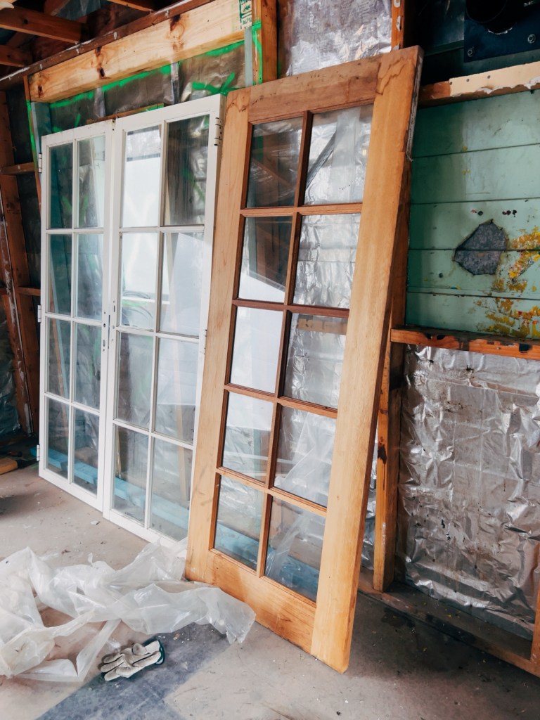 After not seeing a usable set of French doors in months I have found 2 sets in week. The first set are aluminum framed which is probably practical for the exposed side of the cabin where they would fit, and they are slightly narrower so they will fit easily in the gap. The gap in this case is exactly 1666mm.